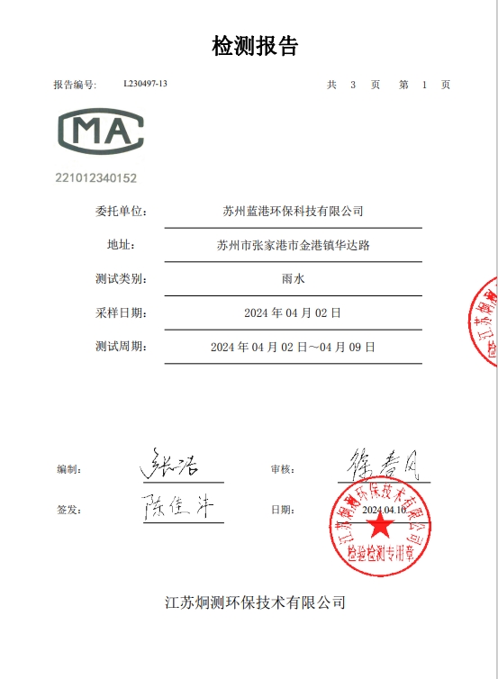 2024年4月份雨水檢測報告